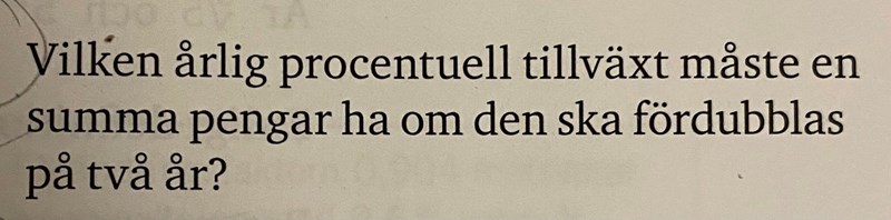 Vi vet att n = 2 eftersom det står i frågan att den ska fördubblas på "två år"