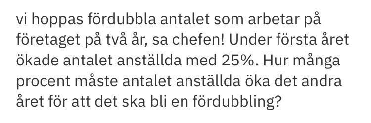 är två ska du alltså anställa 0,75x personer, hur många procent kan det vara av 1,25x personer