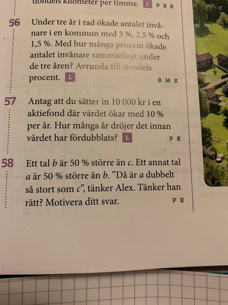 Hur långt har du kommit? Hur skriver du att "b är 50 % större än a" med siffror?
