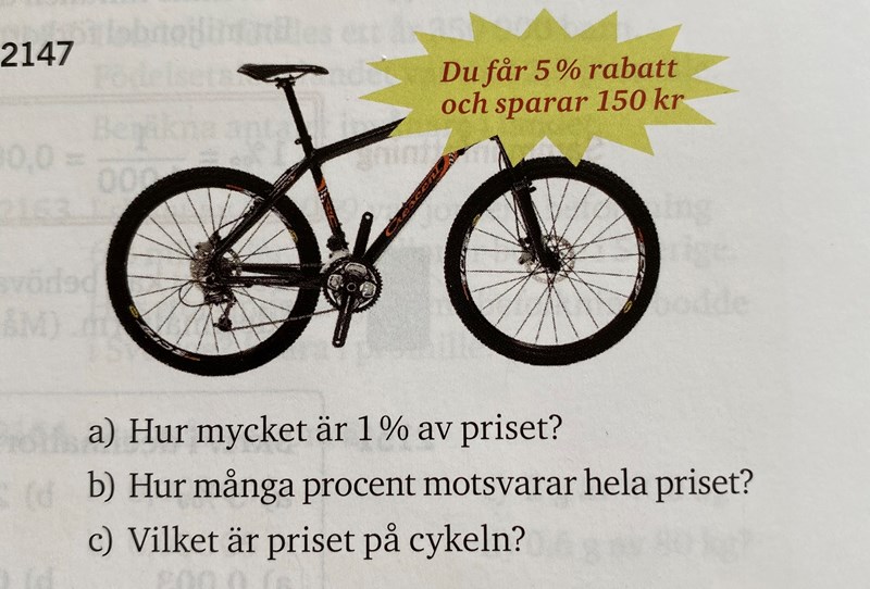 a) Hur mycket är 1 % av priset om 5 % av priset är 150 kr?