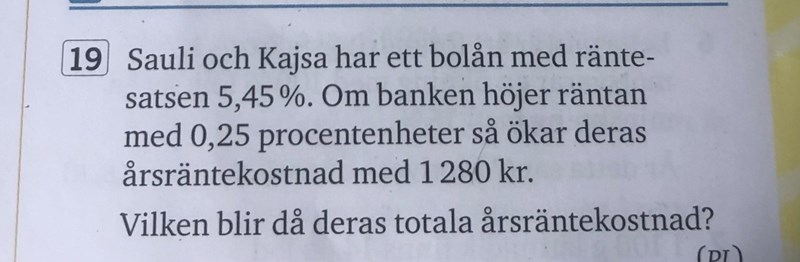Du vet ju inte hur stort deras bolån är, så du kan kalla detta för x. Hur mycket ränta betalar de innan ränteökningen?