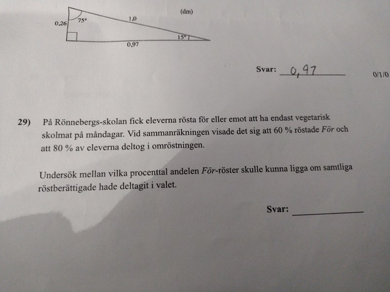 Antag nu istället att alla dessa skulle röstat mot förslaget om de faktiskt skulle ha röstat. Hur många procent hade då röstat för?