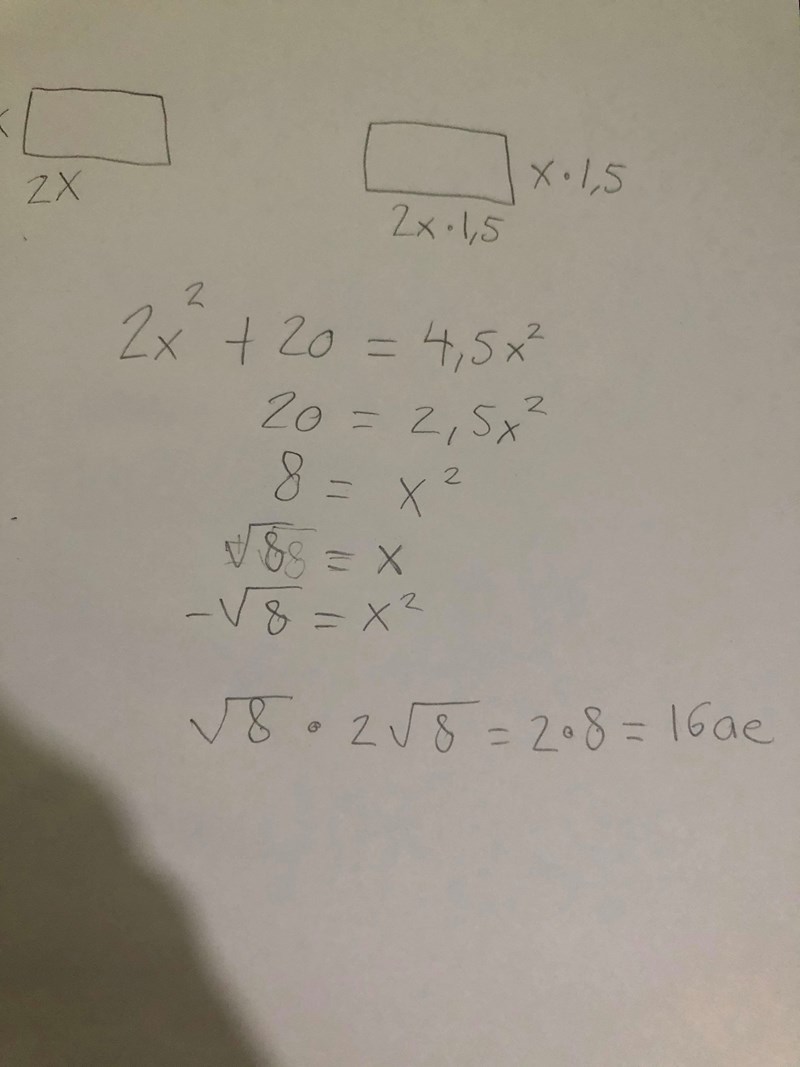 Rektangelns area ökar då med 20 areaenheter. Hur stor var den ursprungliga rektangelns area?