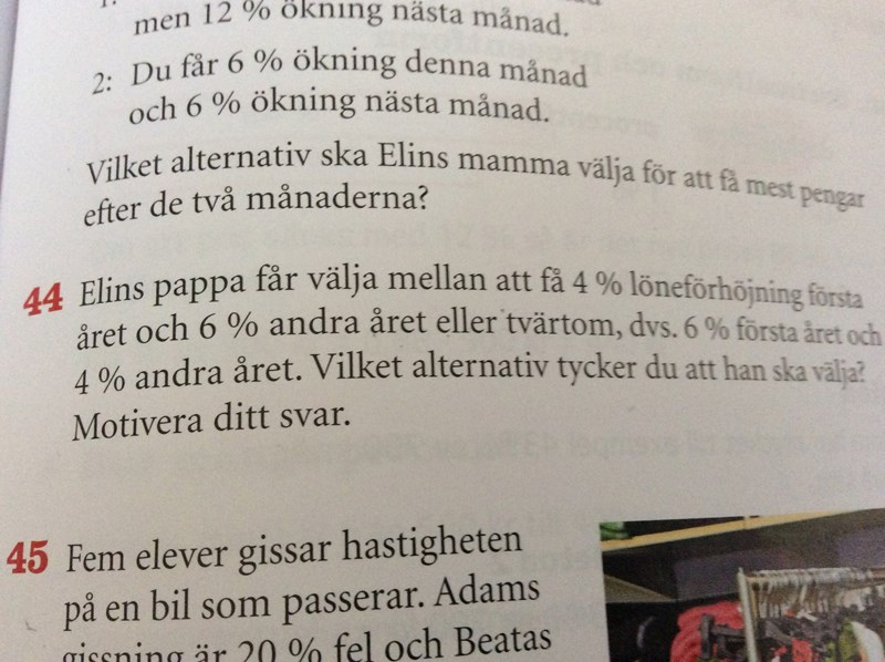 Två årslöner ger 12*200=2400 kr mer i lön, om man får 6% första året och 4% andra året.