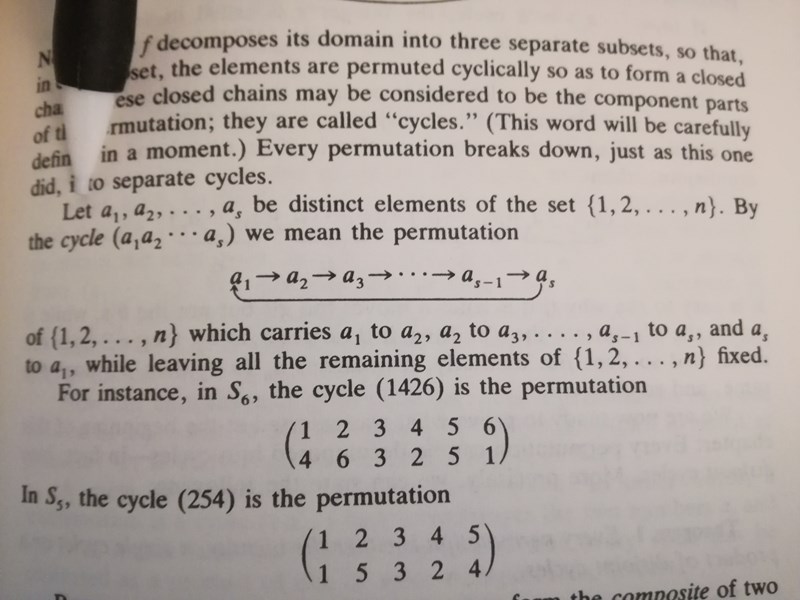 Man kan rimligtvis ha olika definitioner av hur man skriver permutationer men jag hämtade min från Charles c Pinters A book of abstract algebra då den låg inom räckhåll.