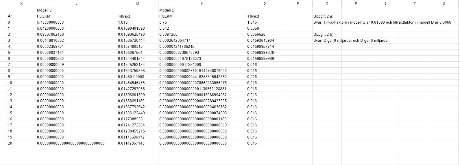 Det ser nästan ut som att du har använt formlerna för , istället för , i tillväxtfaktorkolumnerna.