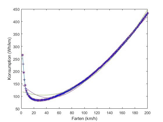 %En funktionen som räknar elkonsumptionen vid en viss hastighet v.