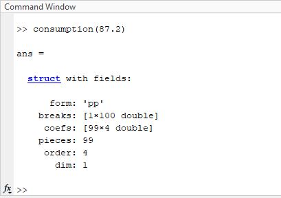 c=ppval(cs,v); %Här beräknas värdet för hastigheten som givits