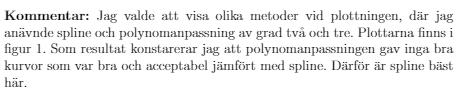 Jag använde polynomanpassning av grad 2 och 3 tillsammans med spline då. Som motivering till varför är Spline bäst här skrev jag: