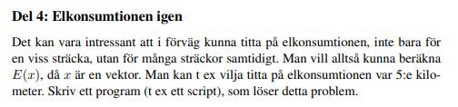 %Funktionen räknar den sammanlagda elkonsumtion för en viss sträcka,
