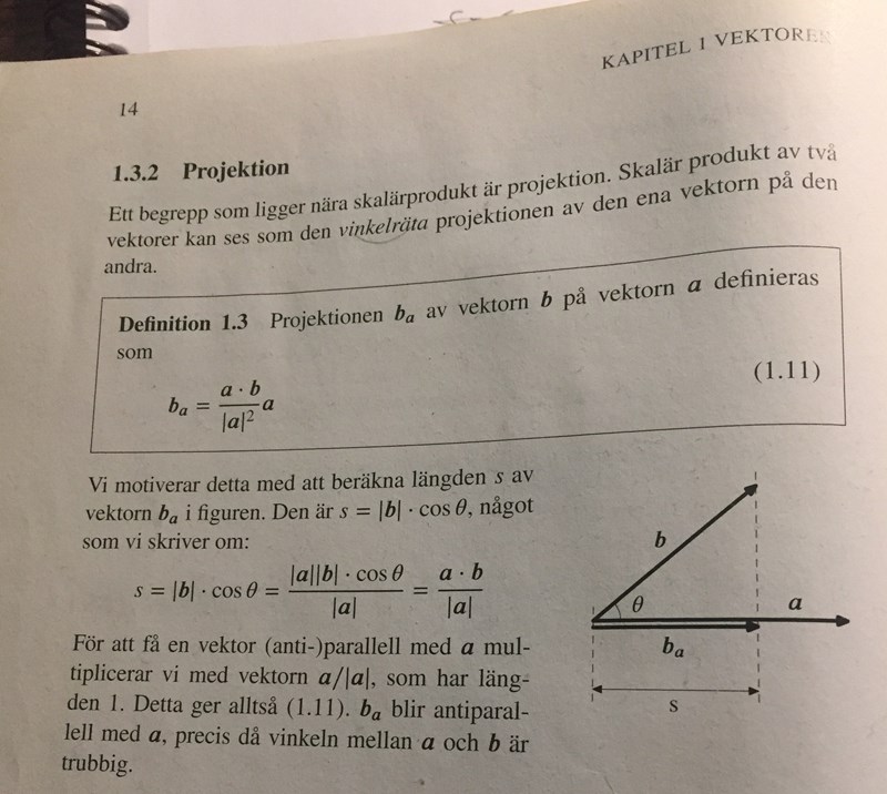 Hej, jag försöker att begripa formeln för när man ska projicera en vektor på en annan.