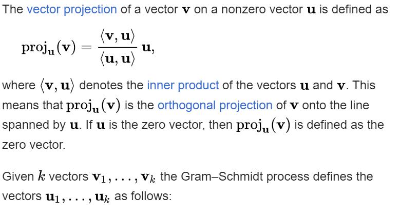Ok, att den första basvektorn vi väljer bara behöver vara ||x1||>0 överenstämmer med min intuntions. MEN: när vi väljer basvektor nummer två atar jag att det inte är applicerbart. Bland annat tänker jag att "basvektorn" inte kan vara en linjärkombination av våran basvektor nr 1. Därmed kommer basvektor nr 2 att utöver att vara ||x2||>0 även vara linjärt oberoende i förhållandet till basvektor nummer 1. Behöver den uppfylla något yttilgare?