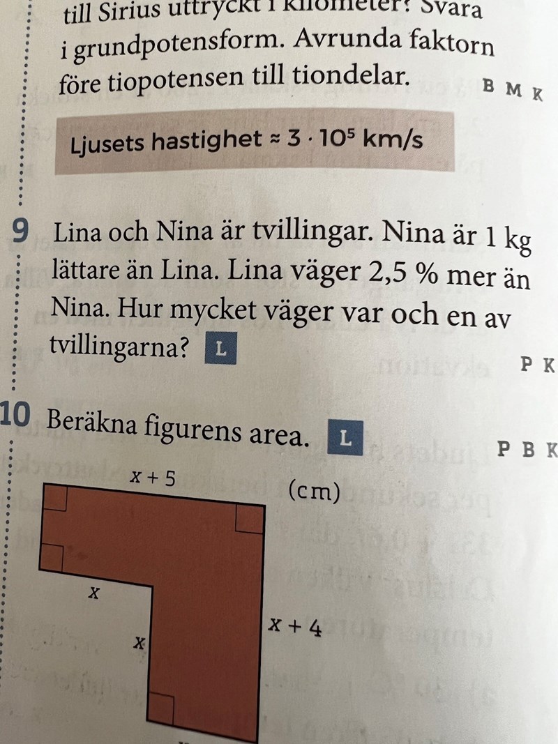 Om Lina (som är 1 kg tyngre) väger 2.5% mer än Nina så betyder det att 2.5% av Ninas vikt motsvarar 1 kg.