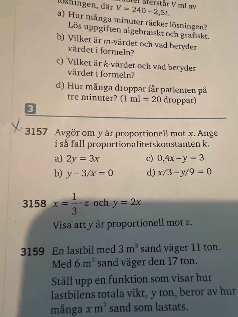 Det första gjorde jag genom att dividera 2y med 2 för att få y ensam. Dividerade även h-led med 2 och fick y=1,5x -> det är proportionell
