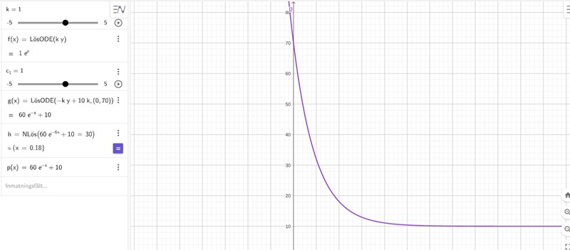 Obeserver att x är k (rad 5 ), men bytte variabel för att geogebra ska kunna ge svar.