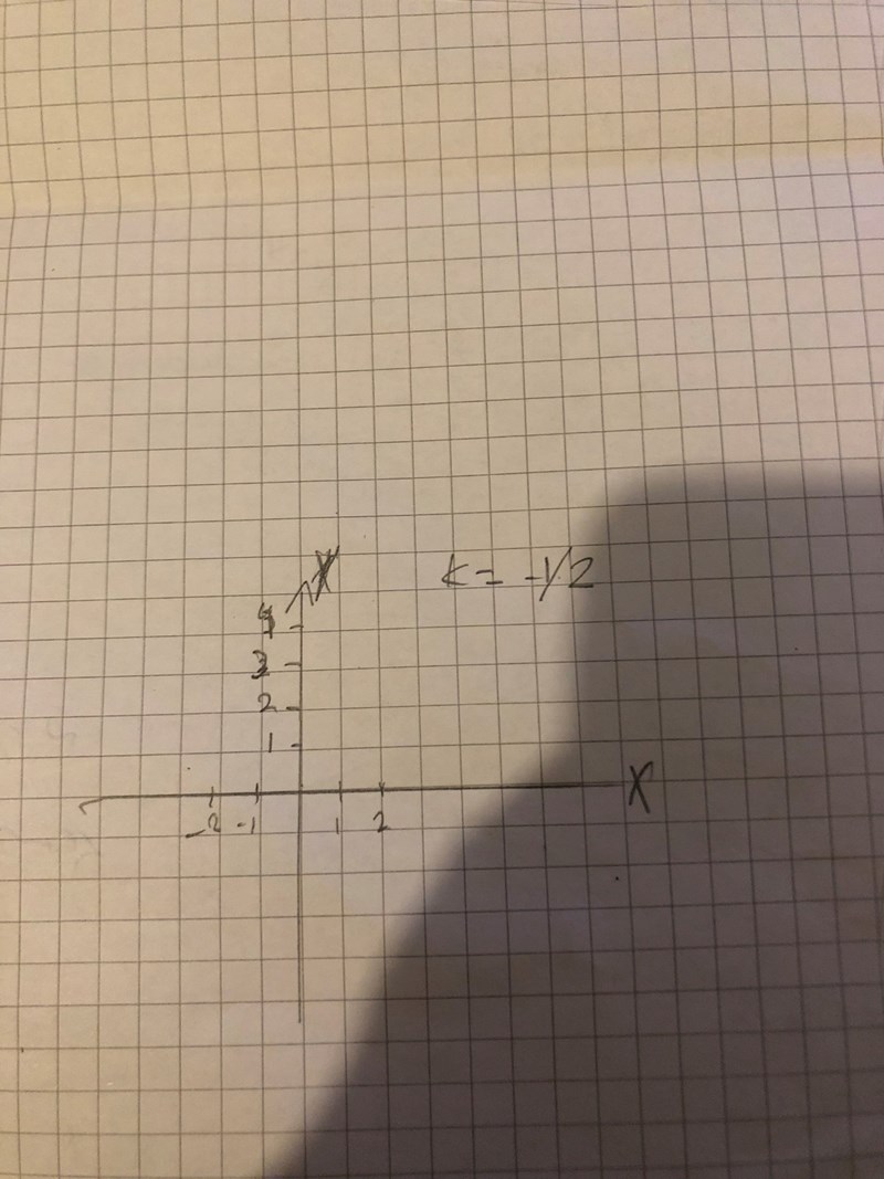 rita en proportionell graf av en linje med k-värdet -1/2. Bestäm även m-värdet samt funktionen!