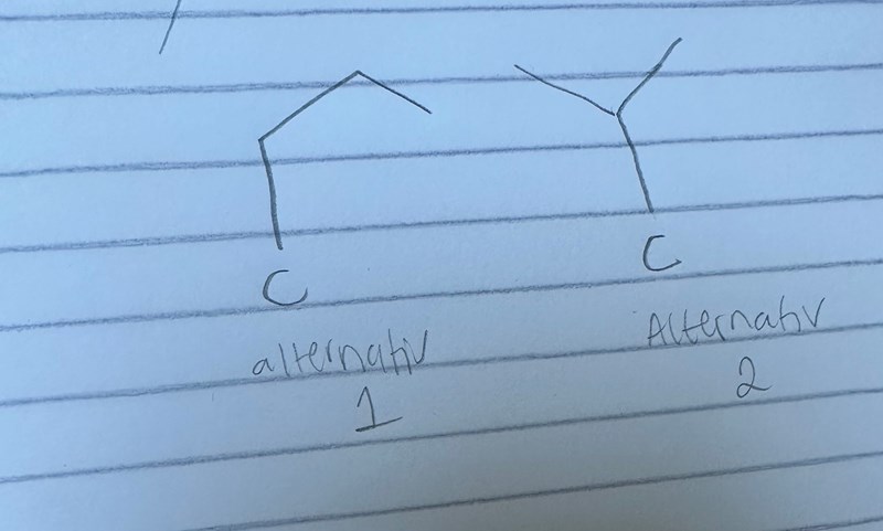 Är alternativ 1 bara propyl och alternativ två 2-propyl ( men vad som porpylen är kopplad till kol nr 2) ?