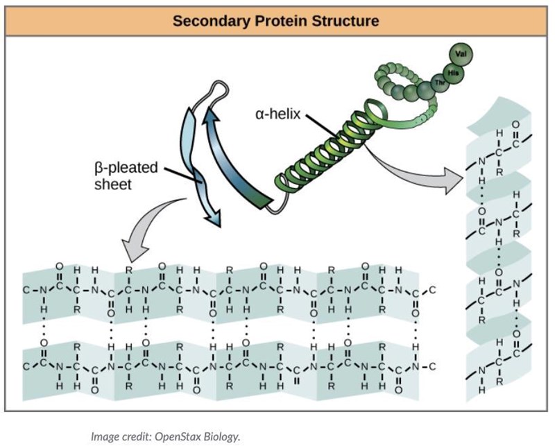 Jag har en fråga om proteiners struktur.De kan ju binda olika och få exempelvis beta- och alfastruktur. Detta antar jag beror på aminosyrornas sidokedjor, men vad är det som avgör om de får beta eller alfastruktur exakt?