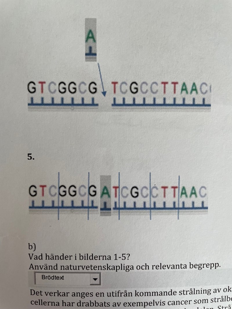 Hur bokstavskombinationen ändras, illustreras i bild 2, där strålning påverkar DNA. Det kanske står om detta i biologiboken?