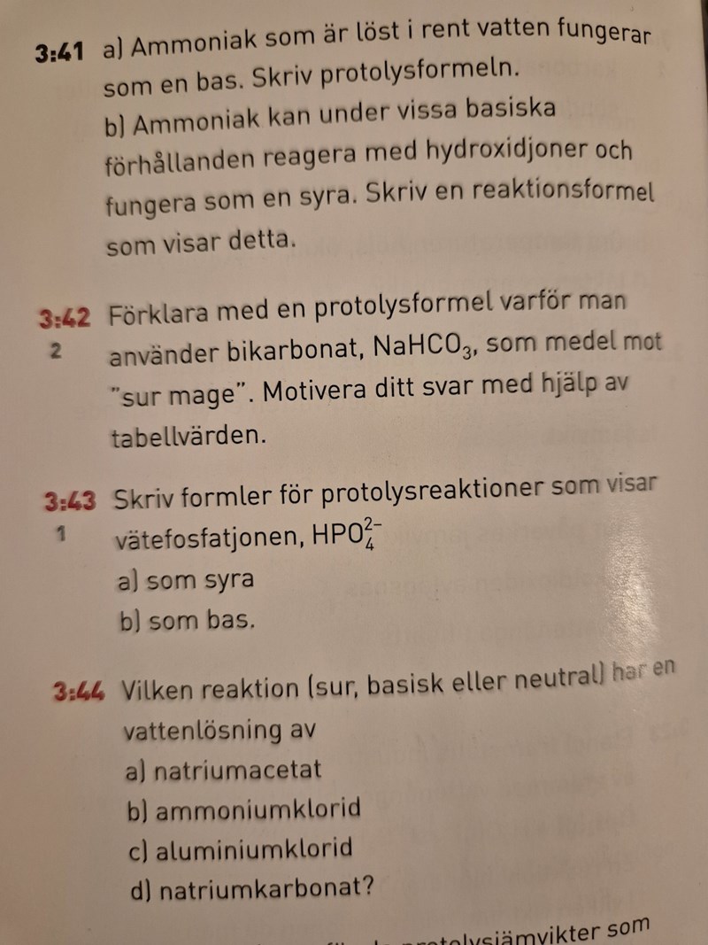 Hur ska man lösa denna fråga. Vad är protolysformeln och hur ska man motivera. (Det är fråga 3:42)
