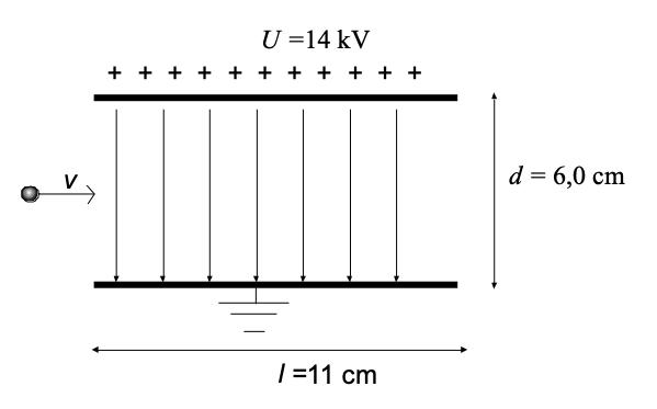 sx = vx*t = 2,5 * 10^6 * (5,32*10^-18) = 0,133 m = 13.3 cm