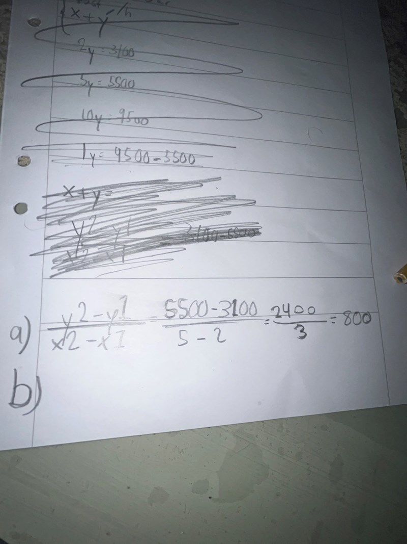 Ex: y2 kan vara 5500 och y1 3100... jag vill inte skriva för mycket, så du kan fortsätta och bestämma x2 och x1. Då får du fram kostnaden per timme.