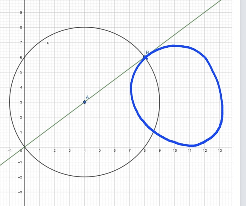 Hej, jag har haft prov på geometri nyss och fick en A fråga som jag tror att jag fick rätt på. Cirkeln skär den positiva x-axeln.