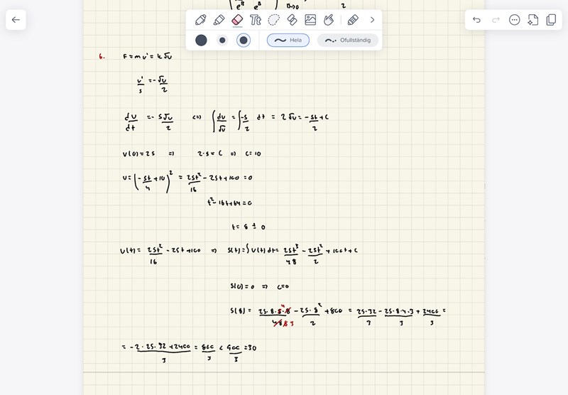 Se uppg 6. Bortse från det jag skriver längst ned. Men min sträcka blir 800/3 vilket inte är närheten av rimligt. Var är felet?