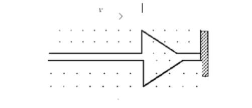 Den övre figuren visar en triangulär puls, som rör sig mot ett fast hinder. Då pulsen når fram till hindret kommer den att reflekteras. Rita den reflekterade pulsens utseende i den nedre figuren.