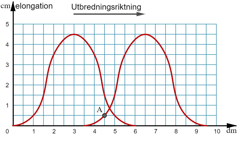 Totalt rör den sig 9 cm, men de frågar efter sträckan från vänstra kurvan till högra. Där A är ritad har den kommit ner igen, till höjden 0,5, och där är det slut.