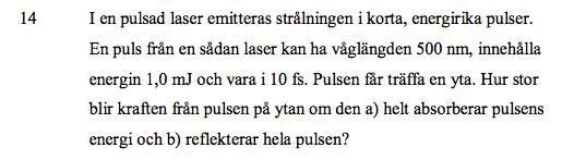 Pulserad laser som träffar en yta, hur stor blir kraften på ytan om den absorberar/reflekterar