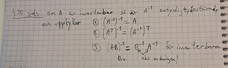 Jag vill gärna förstå varför (AB)^-1 ej kan vara A^-1*B^-1 och varför ska det vara på det omvända sättet som anteckningarna säger?