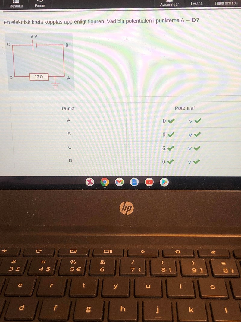 OK. Är du med på att potentialen då måste vara positiv vid D?