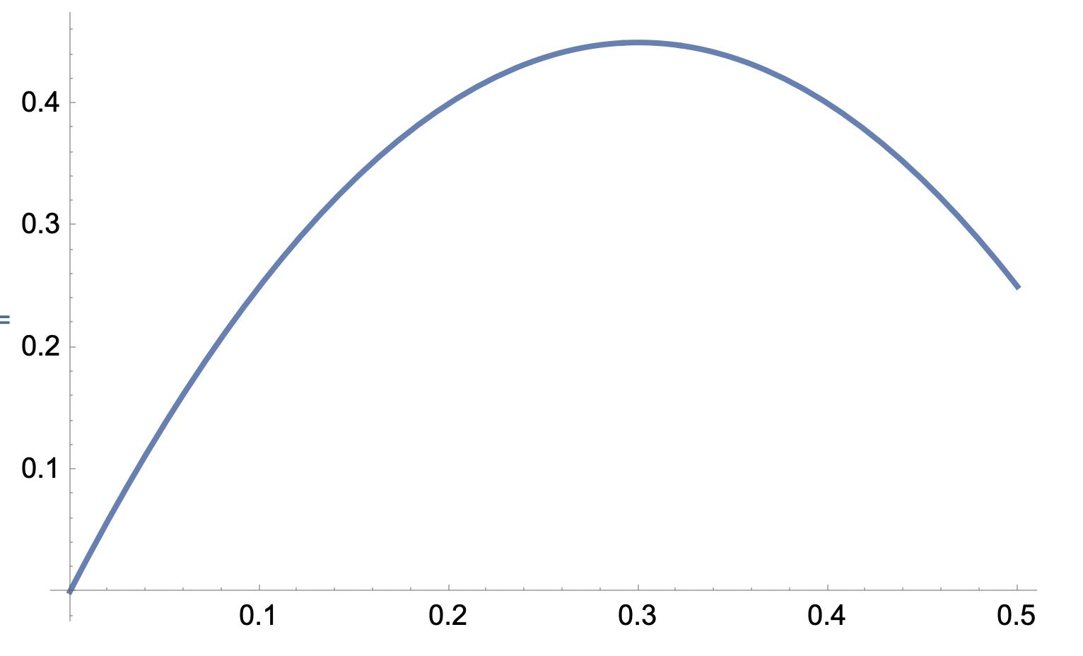 Jag deriverade funktionen och beräknade dess nollställe vilket blev 0,3 och fick därför koordinaterna (0,3;0,45) för punkten. I facit är svaret (0,4;0,4). Jag förstår inte hur man får fram det svaret.