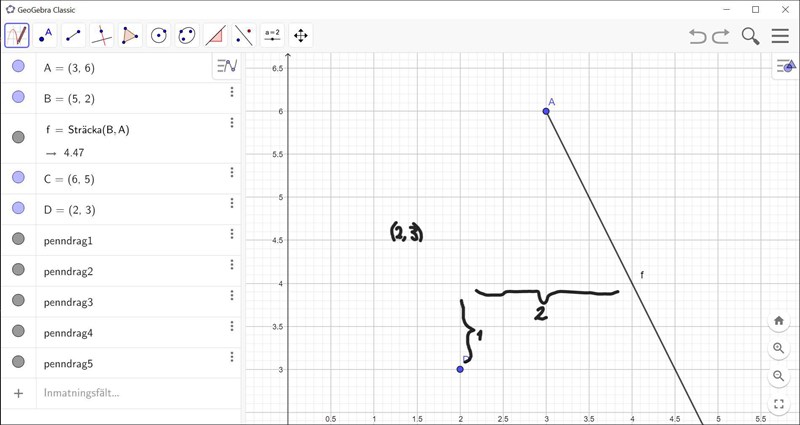 Punkterna (3,6) och (5,2)