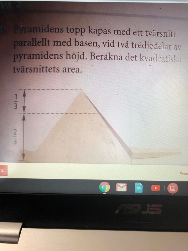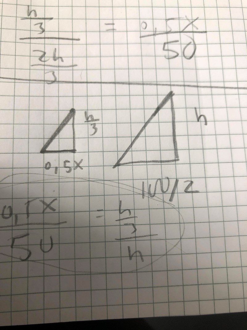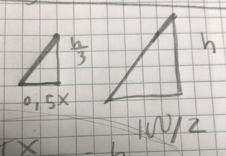 Är du då med på att dessa två likformiga trianglar bildas om du ser pyramiden från sidan?