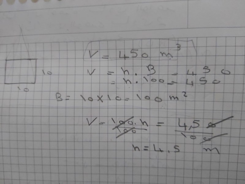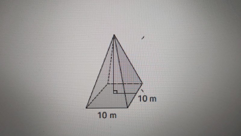 Pyramiden har volymen 450 m3 . Beräkna pyramidens höjd.
