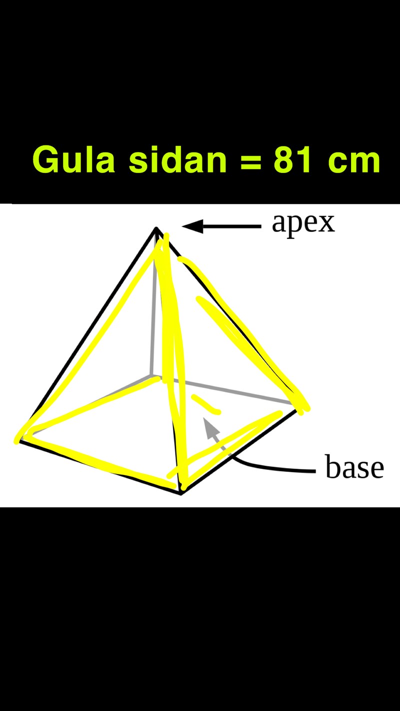 Det är en vanlig pyramid. Sidytorna är 81cm, kvadraten (bottenytan) är 81 x 81cm.