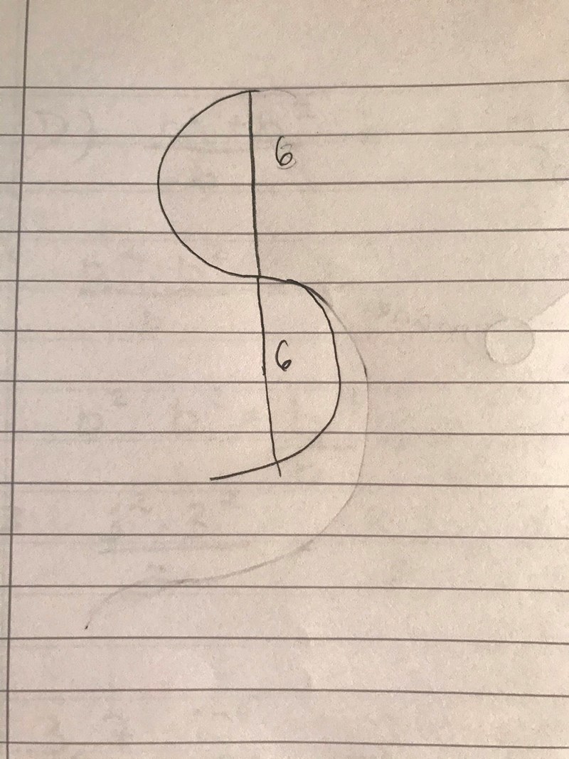 Man kan tänka sig att man böjer ut banan så att den går lika långt men rakt, inte i cirkel. Kan du rita den då?