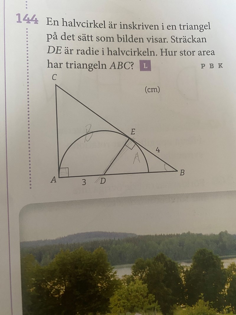 Trianglarna ABC och DBE är båda rätvinkliga.