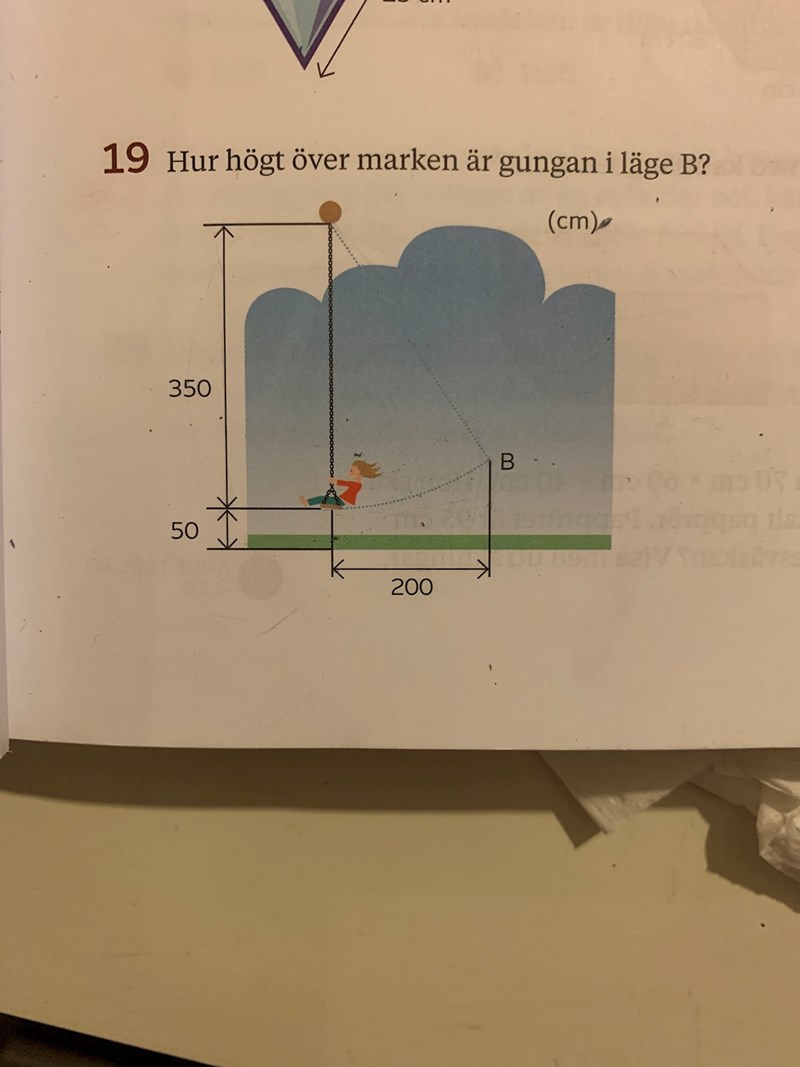 Om du drar ett vågrätt streck från B mot gungans kedja så får du en rätvinklig triangel.