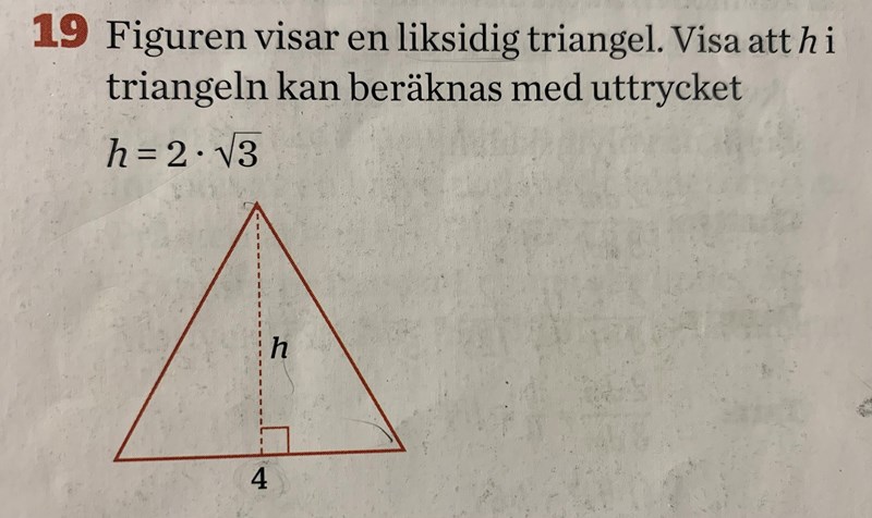 Du vet att hypotenusan är 4cm lång och ena kateten är 2cm.