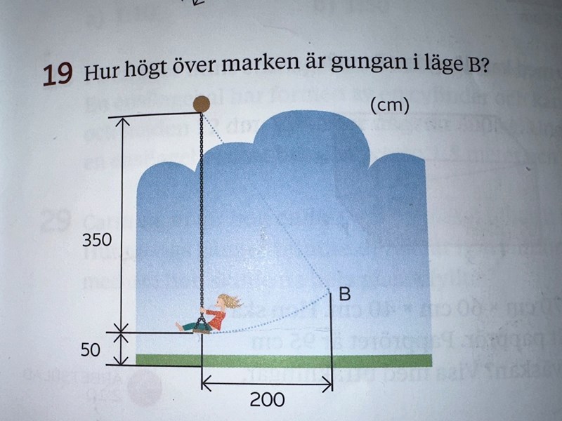 Du kan dra en hjälplinje: horisontellt från B in till kedjan.