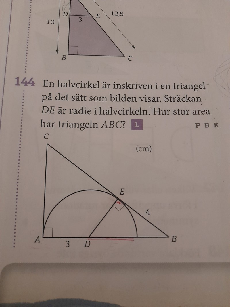 Jag har tagit reda på att radien är 3 eftersom vi set att sträckan DE är lika stor som AD.