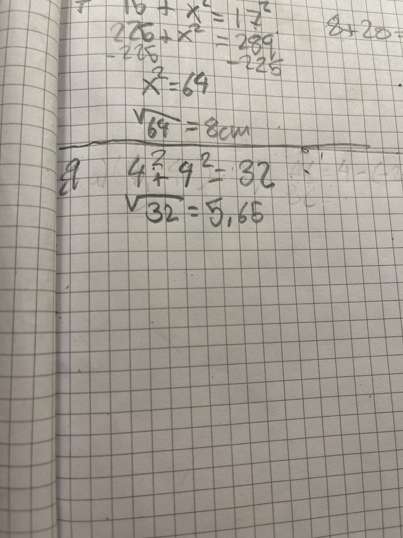 hej, har fastnat på denna uppgift. Jag antar att man ska använda Pythagoras sats men jag vet inte ens vart jag ska börja då sidorna av kvadraten inte når båda hörnen av sidorna.