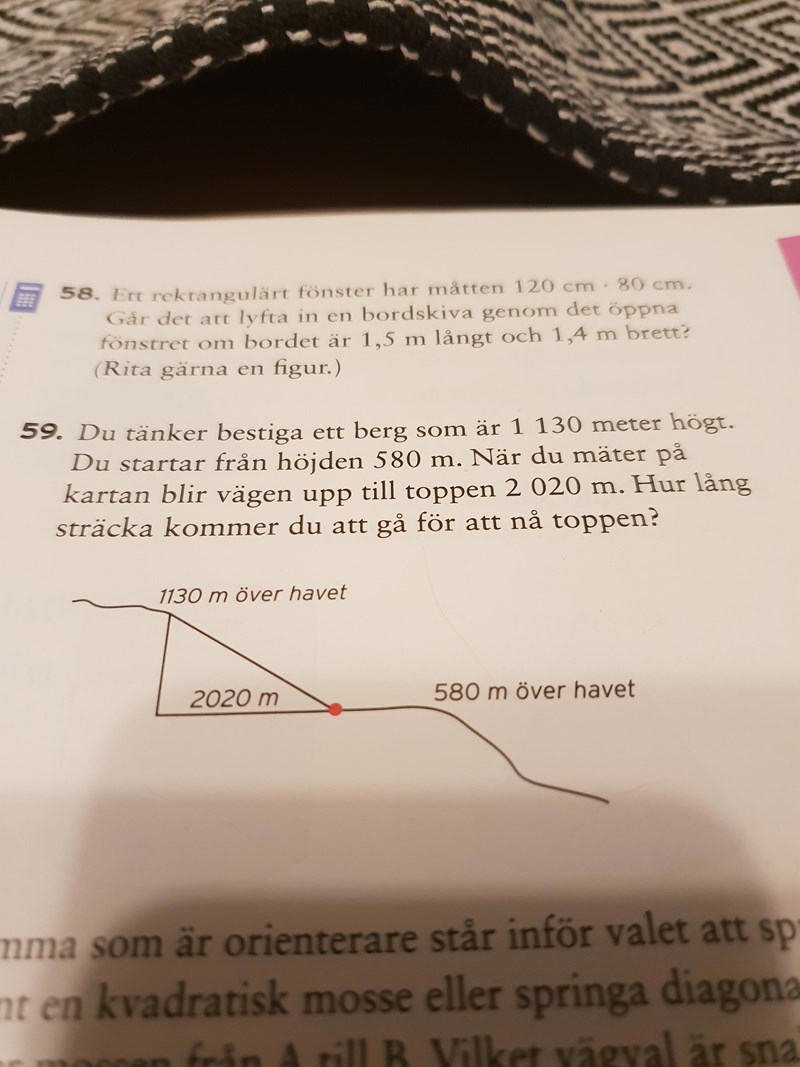 Du tänker bestiga ett berg som är 1130 meter högt. Du startar från höjden 580 m. När du mäter på kartan blir vägen upp till toppen 2020 m. Hur lång sträcka kommer du att gå för att nå toppen? Jag fattar ingenting om frågan, förstår inte vad som menas, kan inte försöka lösa den för jag förstår inte hur man ska räkna och vad man ska räkna hjälp snälla fort