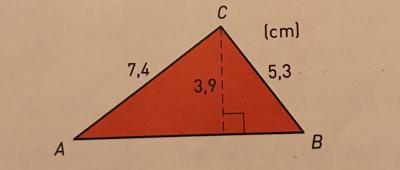 Hur lång är sidan AB? Avrunda till tiondels centimeter. Triangeln ABC är inte rätvinklig. Jag vet inte hur jag ska räkna ut denna uppgift