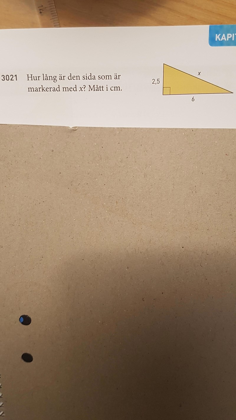 Första kateten i kvadrat + andra kateten i kvadrat = hypotenusan i kvadrat.