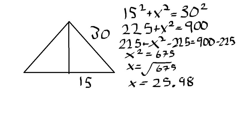 En liksidig triangel har alla sidor 30 mm. Hur stor är höjden?