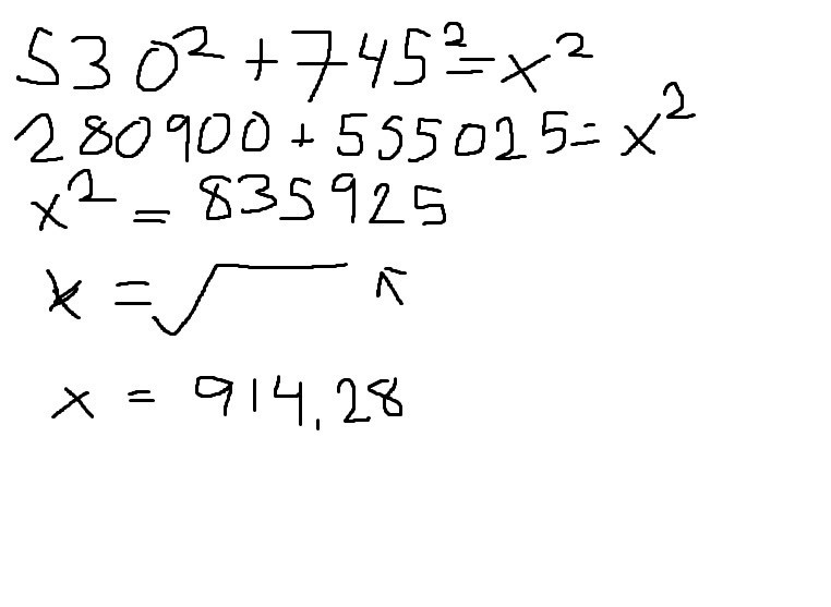 En ballong stiger till 530 meters höjd och driver i sidled 745 meter. Hur långt ifrån utgångspunkten är ballongen?